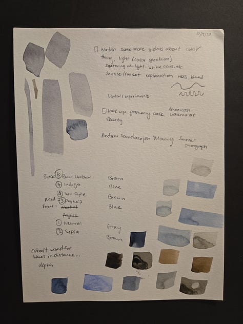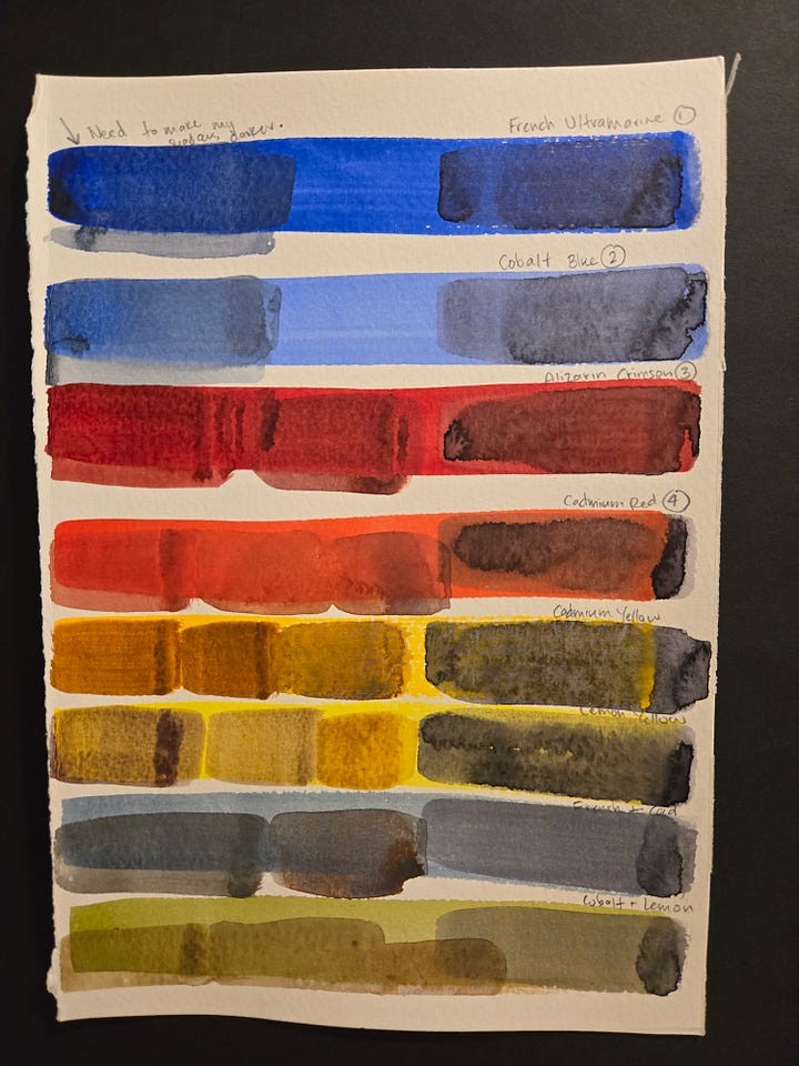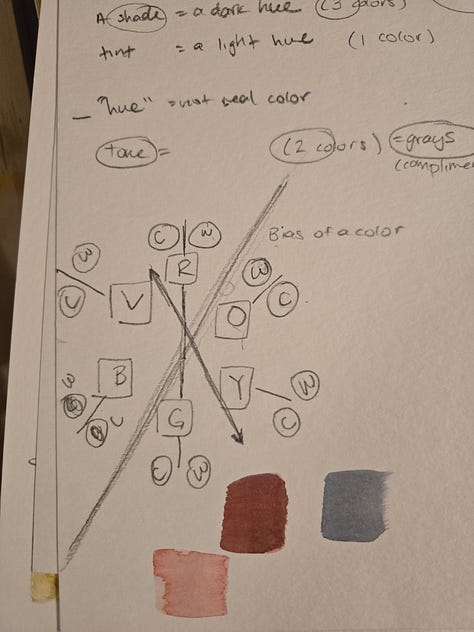 First we tested our neutrals colors, and did a few exercises and theory work. As someone who didn’t take any art classes or go to art school, much of this information is new for me.